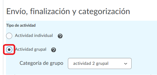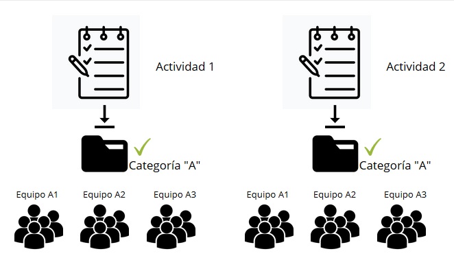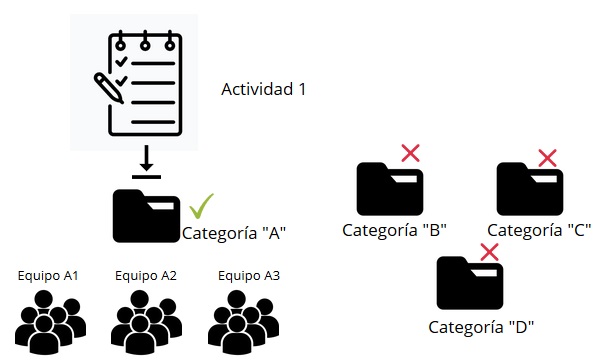 Si la Actividad grupal 1 elegimos asociarla a una categoría que denominaremos “A”, eso quiere decir que en esa actividad no podremos ya tener asociadas otras categorías, como B, C, D.