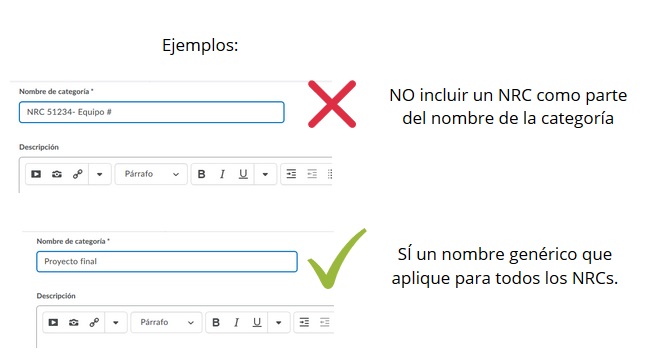 Ahora, si queremos que los nombres de nuestros grupos queden más específicos para que nosotros y nuestros alumnos podamos identificar con facilidad qué grupos son para qué NRCs, realizaremos lo siguiente: