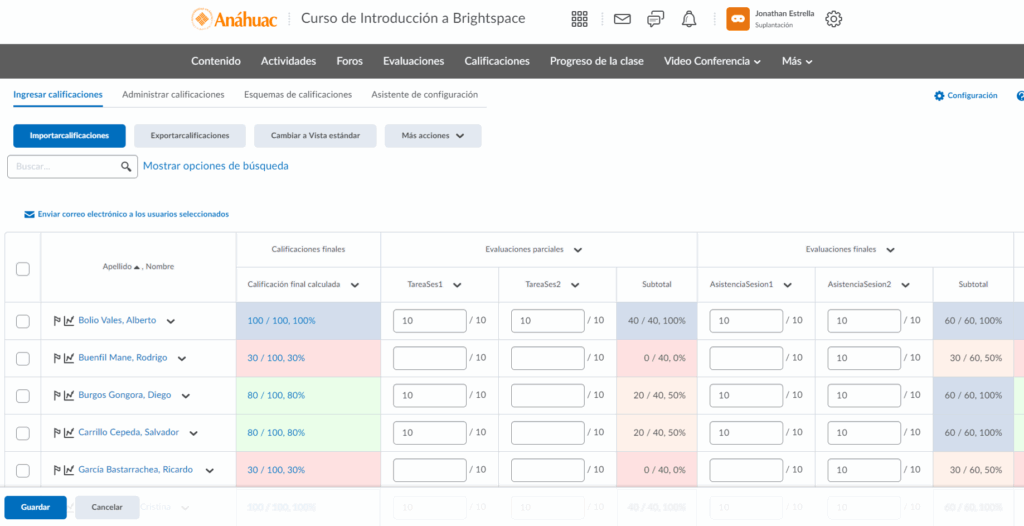 Paso 1. Dirígete a la sección de Calificaciones y seguidamente a la pestaña de Ingresar calificaciones. Esta ventana contendrá la información nuestro centro de calificaciones completo.