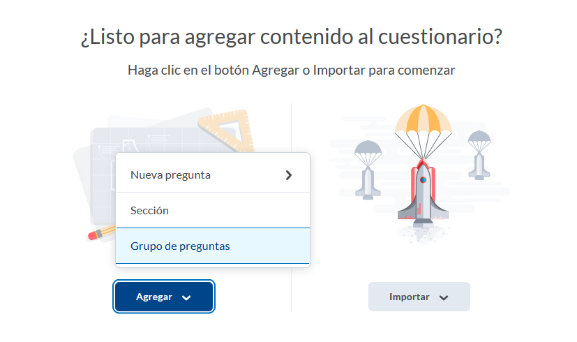 Paso 3. En este tutorial, nos enfocaremos en cómo crear un grupo de preguntas. Por ello, daremos clic en Grupo de preguntas.
