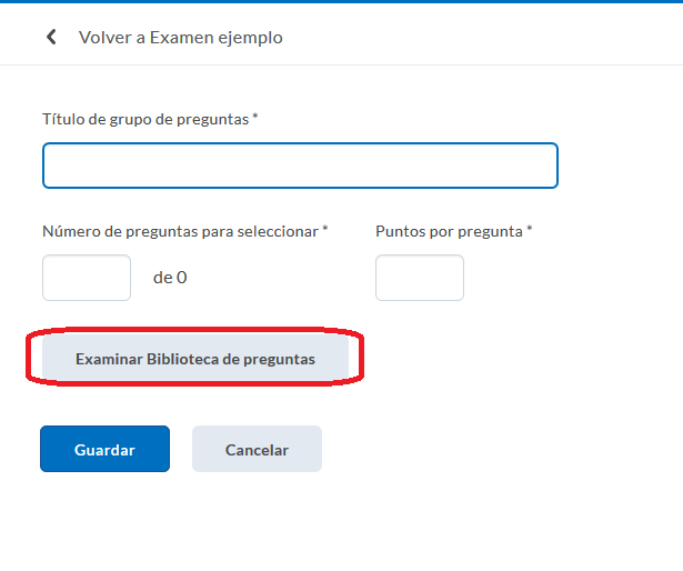 Paso 4. Le colocamos un nombre al grupo de preguntas para identificarlo fácilmente, y damos clic en Examinar Biblioteca de preguntas.