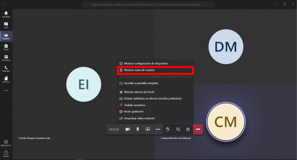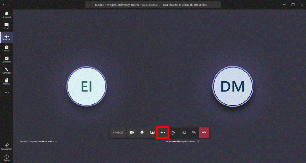 Paso 1. Con nuestra reunion de Teams ya creada y con todos los asistentes dentro vamos a seleccionar el botón de más acciones:
