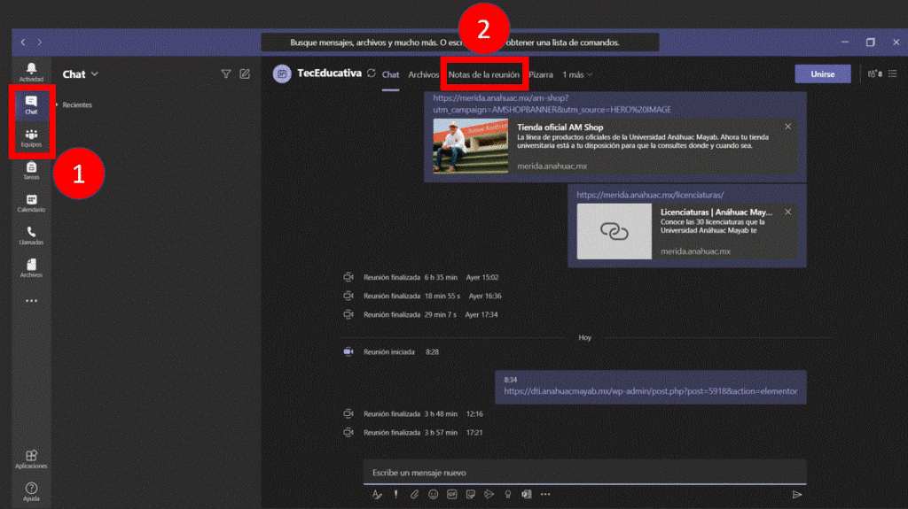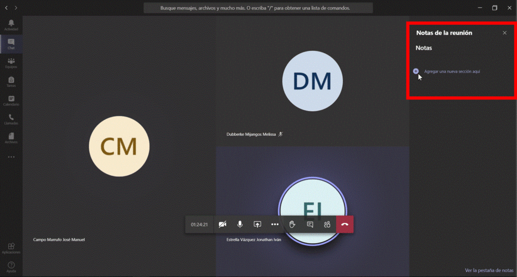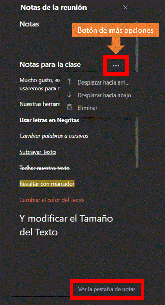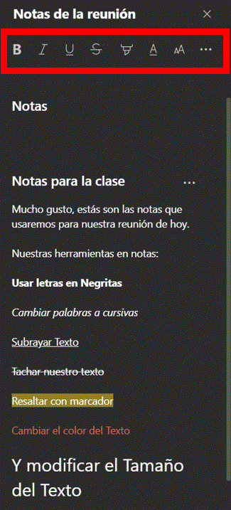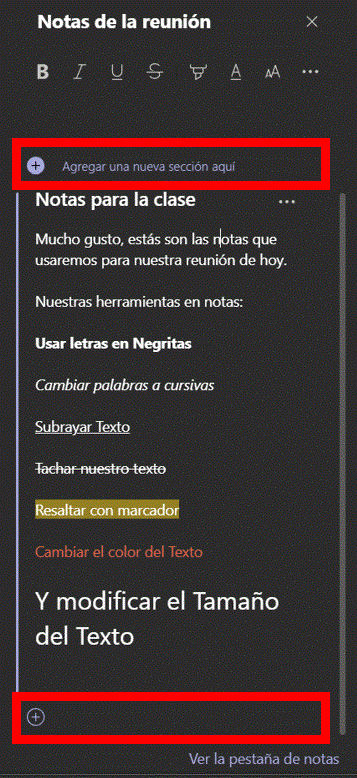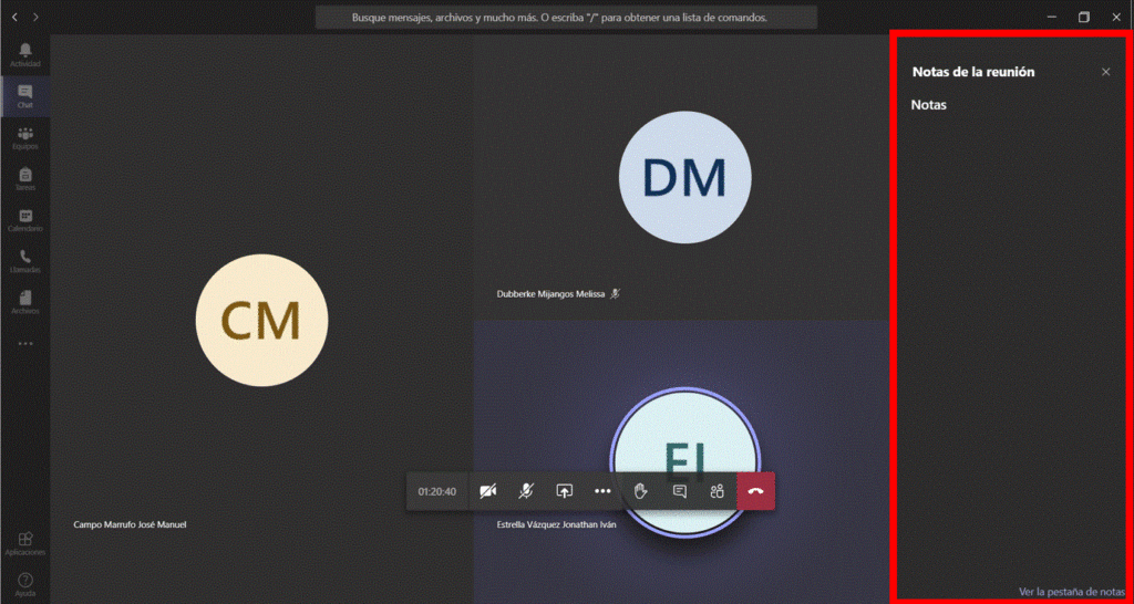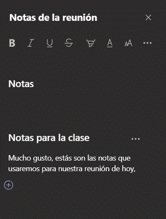 Con esto se desplegará las notas de la reunión en el lado derecho de nuestra pantalla en Teams.