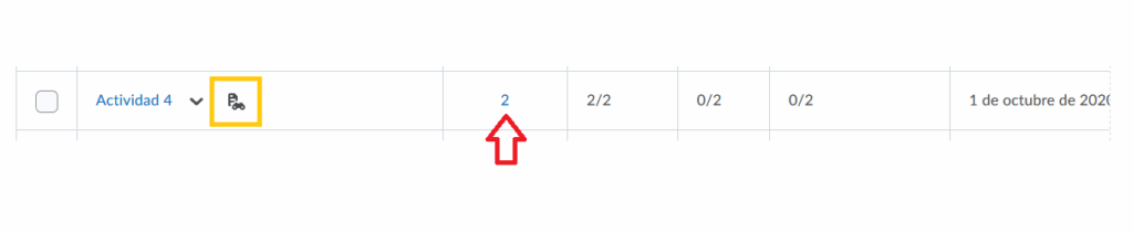 Paso 1. Damos clic en el el número de tareas enviadas. Podremos observar también un ícono de un antifaz junto al nombre de las actividades a las que les configuramos Turnitin, para identificarlas.