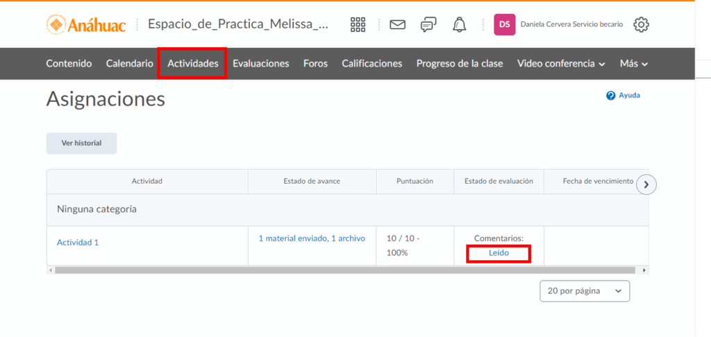 Otra forma de revisar tu retroalimentación es dar clic en Calificaciones