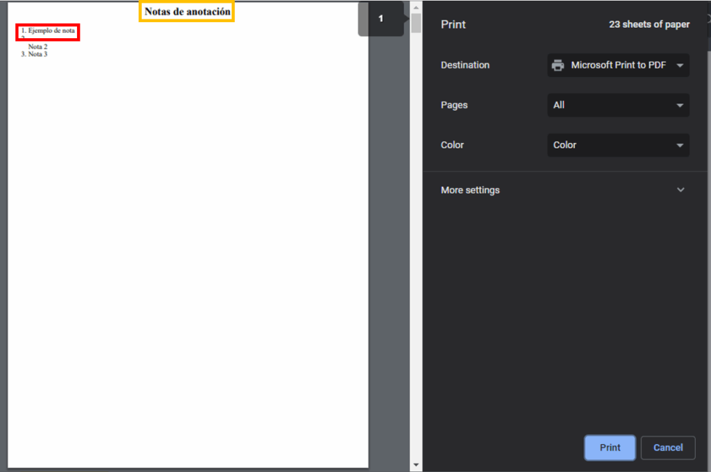 Si tu documento contiene notas, te las incluirá al principio del mismo. Este tendrá el nombre de Notas de anotación. Ya en tu documento, se te indicará el número de la nota a la que corresponde esa parte del texto.