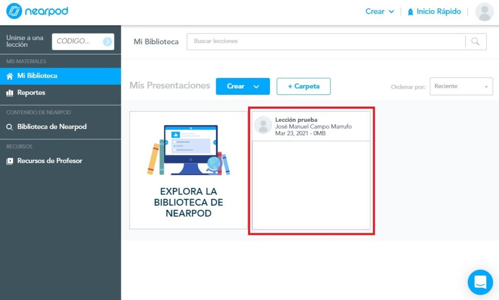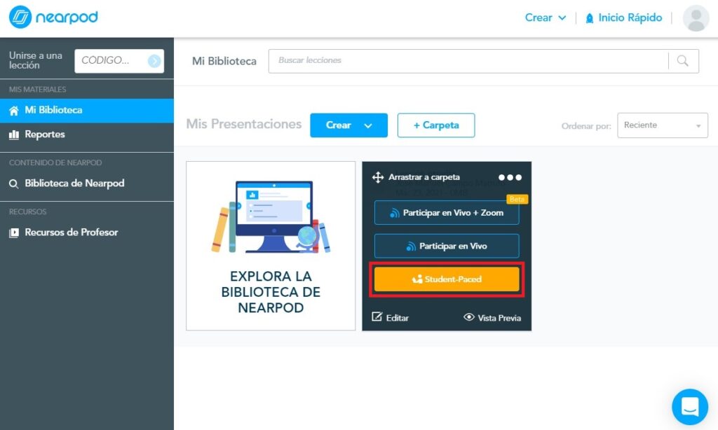 Paso 9. Nuestros alumnos ya podrán visualizar la actividad de Nearpod.