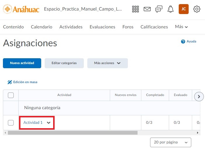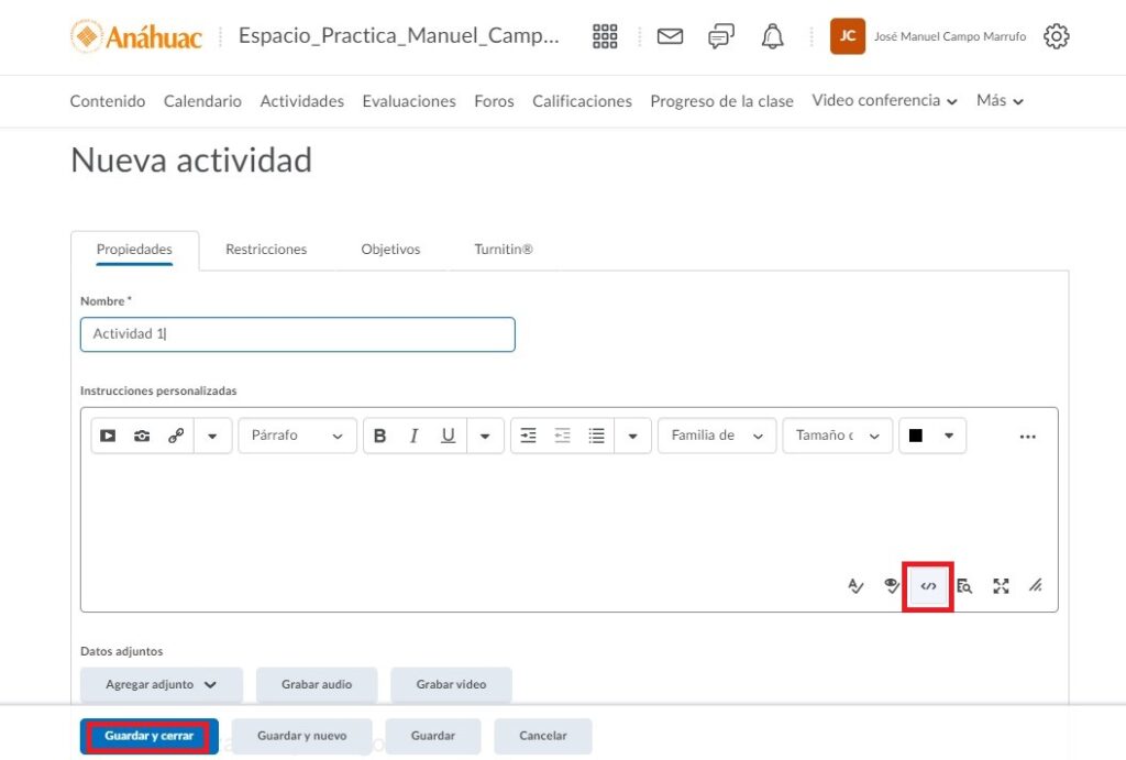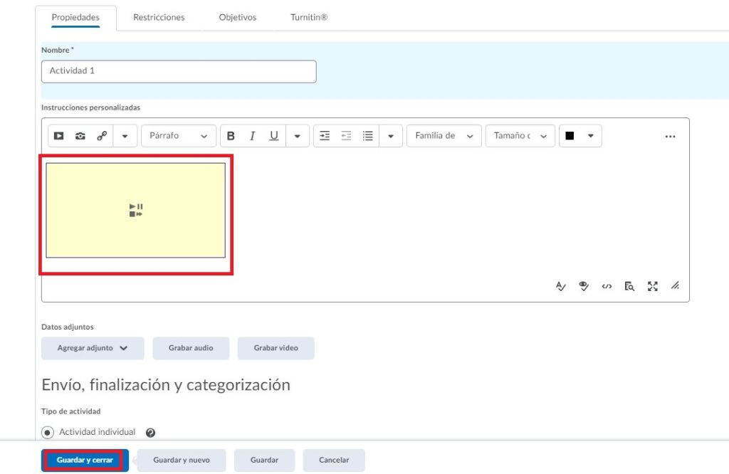 Paso 4. En Brightspace localizamos la actividad en donde queremos incrustar nuestra presentación.