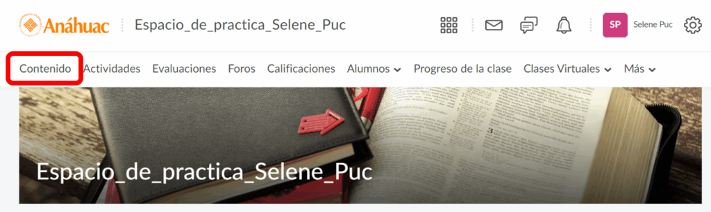 Paso 1. Al ingresar a nuestro curso iremos a nuestra Sección de Contenido.
