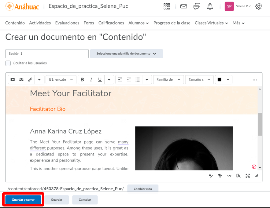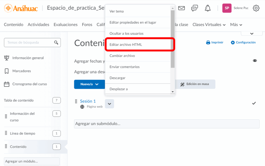 ¡Ahora ya podemos editar nuestro archivo en Brigthspace!