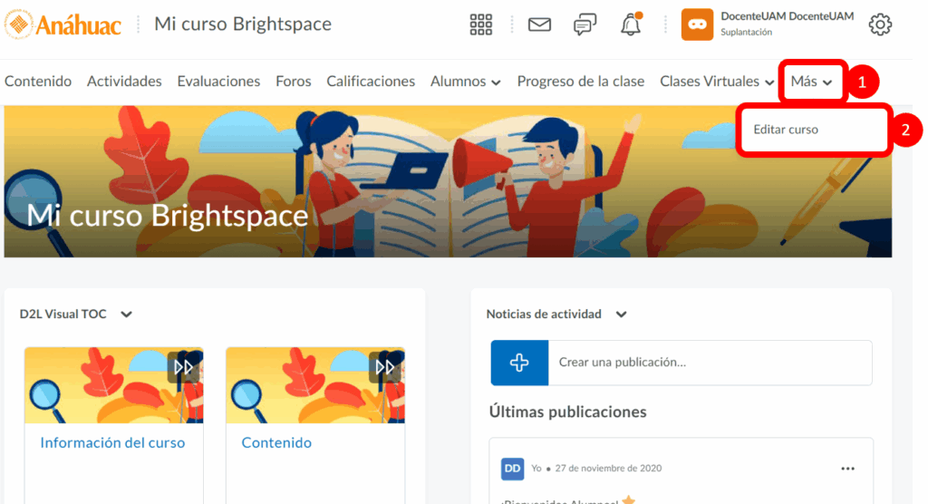 Paso 1. Dar clic en el vagón de Más y seleccionar Editar curso.