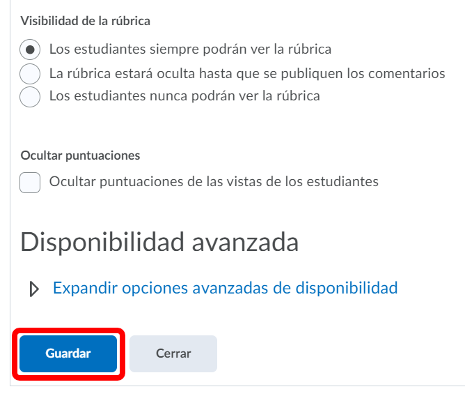 Paso 3. Ahora escogemos la visibilidad de la rúbrica que más nos agrade y le hacemos clic a guardar.