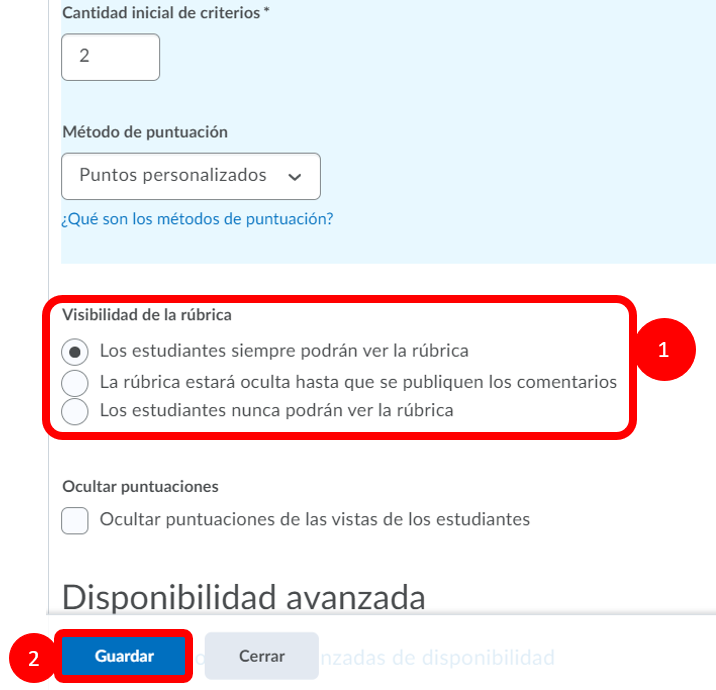 Paso 2. Seleccionamos la visibilidad de la rúbrica y presionamos guardar.