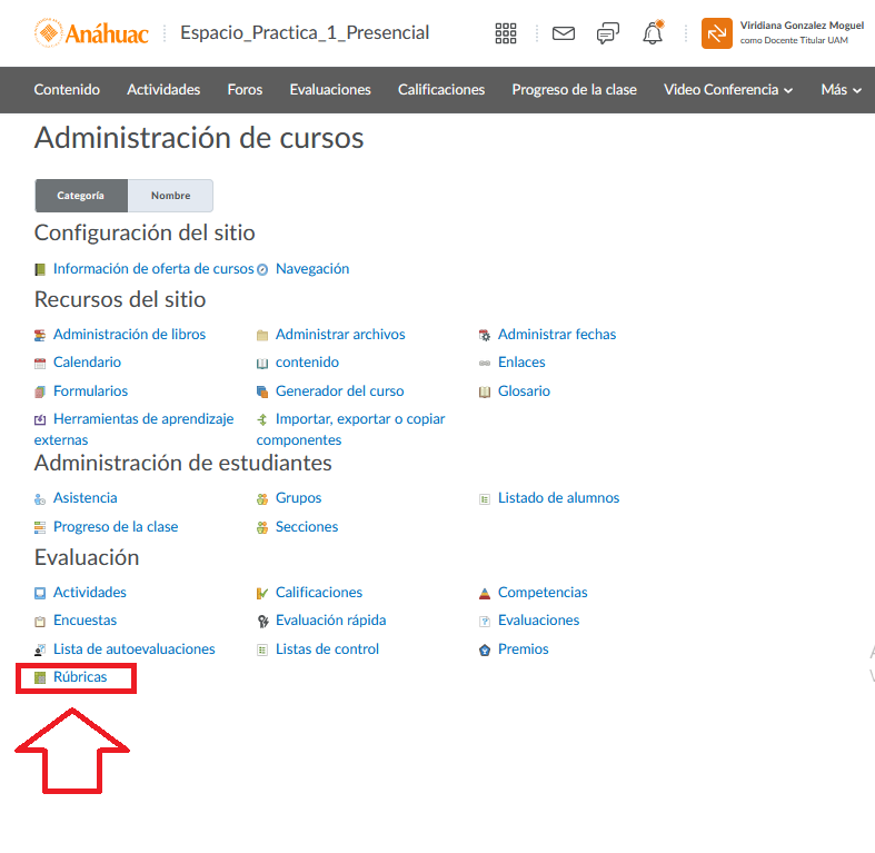 Para dirigirnos al área de rúbricas, seguiremos los siguientes pasos: