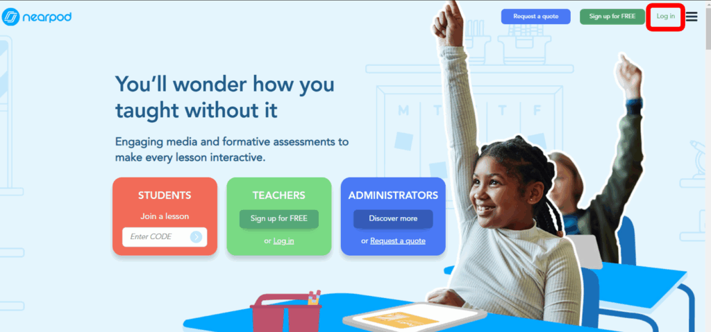 Paso 1. Ingresa a https://nearpod.com/ y selecciona el botón de Log in.