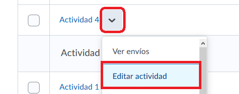 Paso 2. Identificamos la actividad que queremos editar, damos clic en la flecha junto al nombre, y después en Editar Actividad.