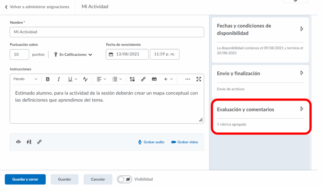 Paso 3. Damos clic en la pestaña de Evaluación y comentarios.
