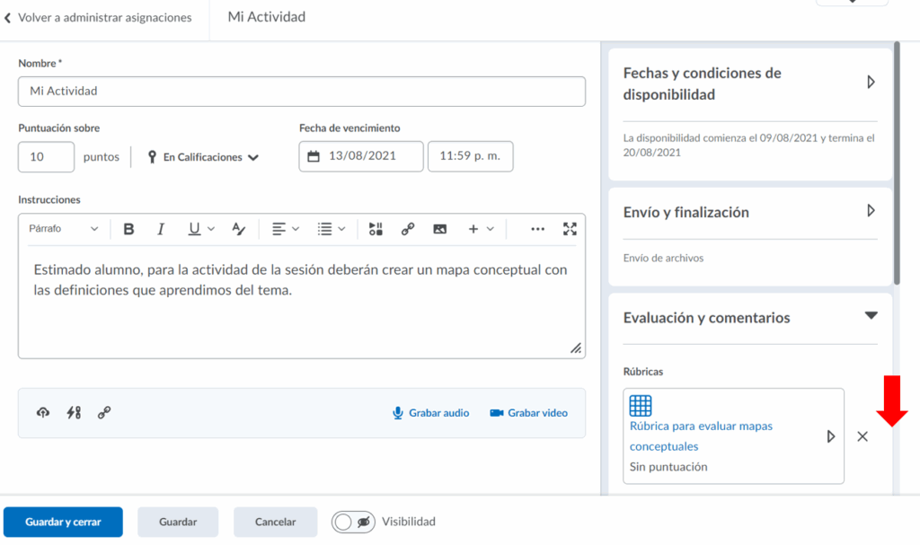 Una vez guardada tu actividad, verás que el siguiente ícono aparecerá al lado del título de tu actividad