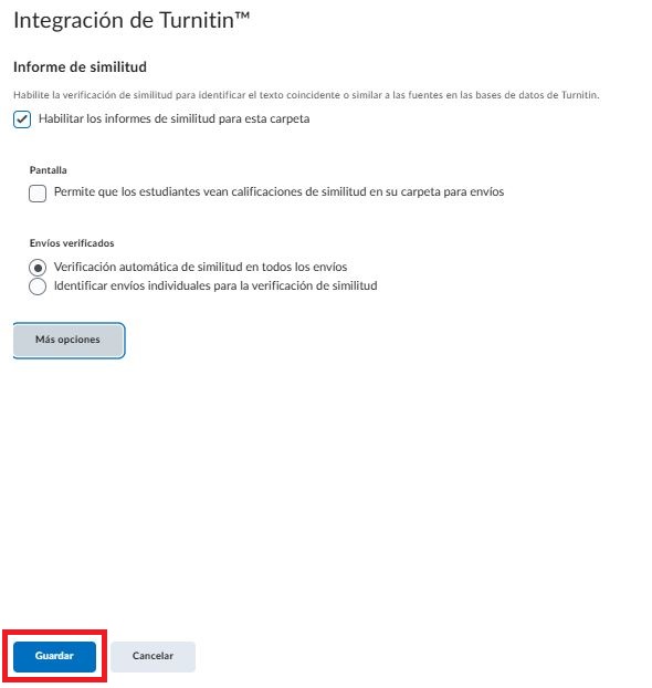Paso 12. Hacemos clic en Guardar esta configuración para usarla en el futuro. Con esta opción ya no tendríamos que repetir este proceso la próxima vez que agreguemos la aplicación de Turnitin a nuestra actividad.
