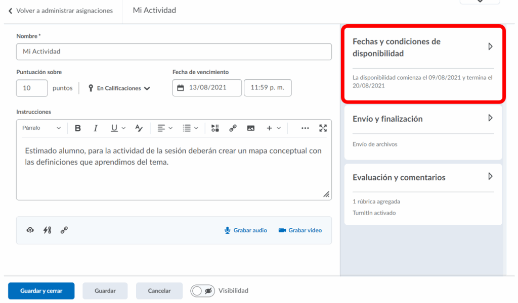 Paso 3. Da clic en la opción de Fechas y condiciones de disponibilidad para desplegar esta ventana.