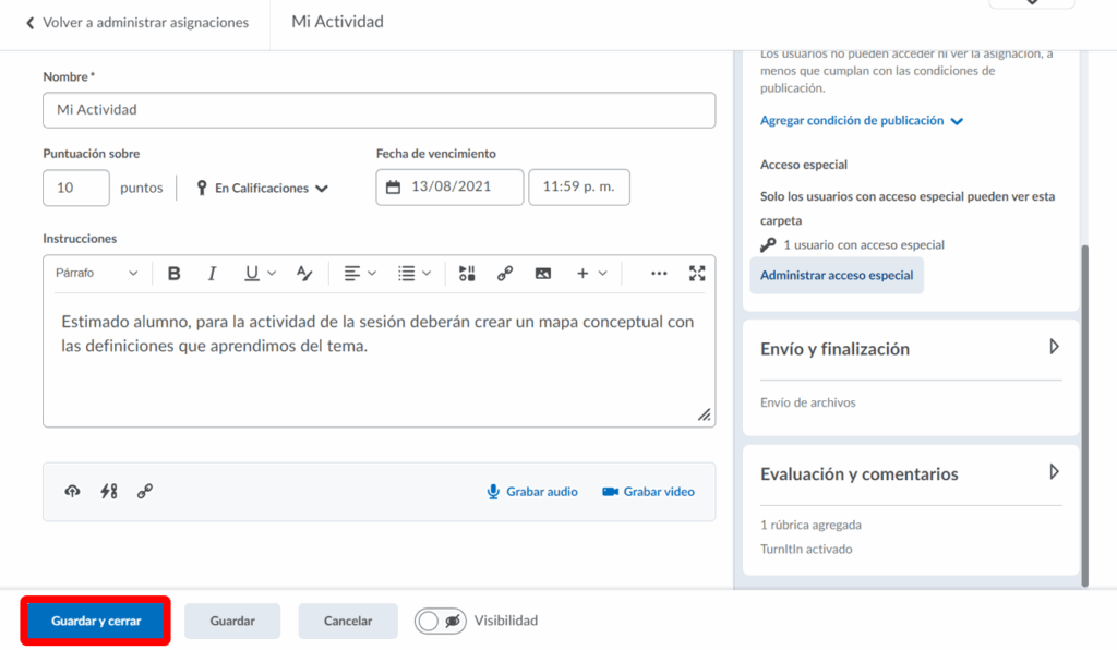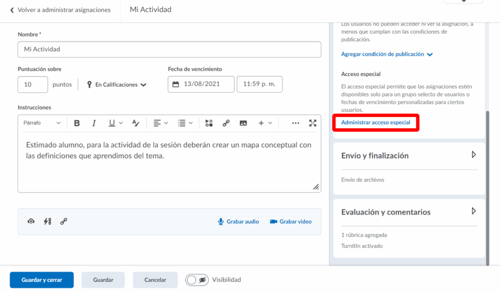 Paso 12. Cuando hayas terminado de editar tu acceso especial puedes seleccionar Guardar y cerrar.