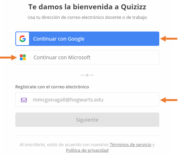 Podrás registraste con tu cuenta de Google, Microsoft o agregar el correo que más utilices.