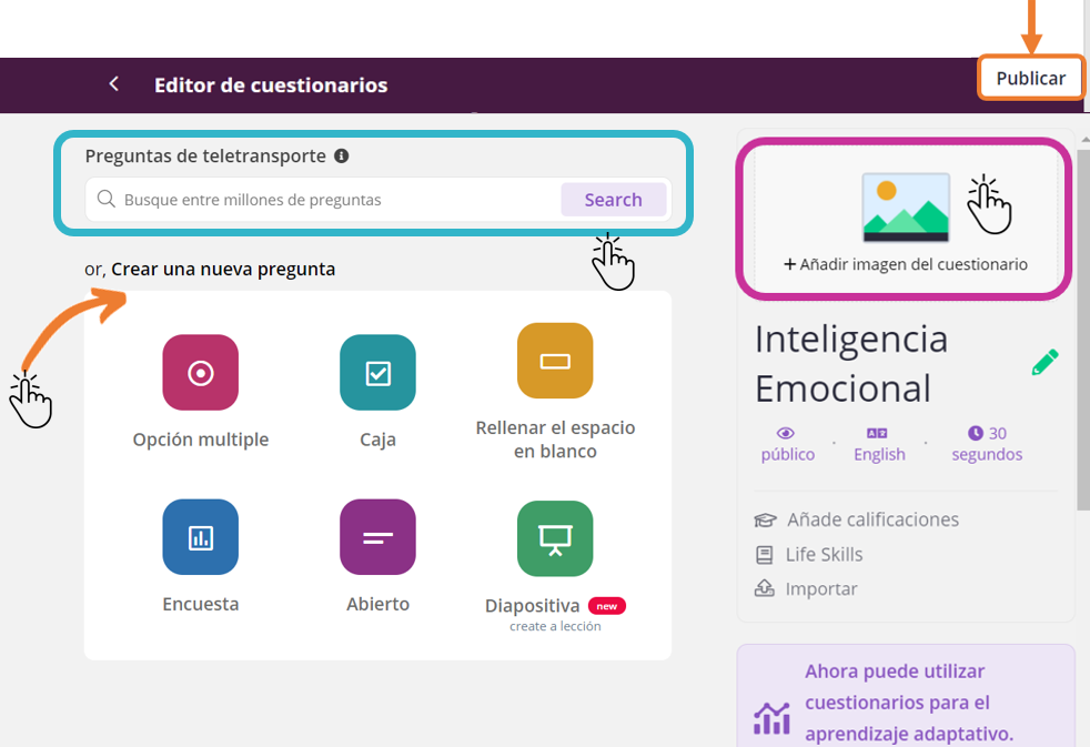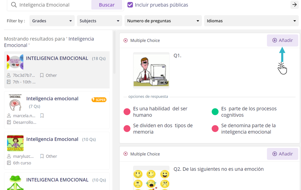 -Añadir una o más preguntas creadas por otros usuarios a tu cuestionario.