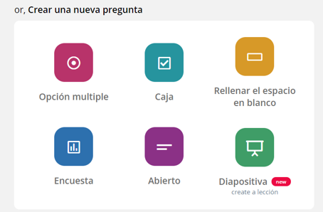 En la sección de Crear una nueva pregunta, encontrarás diversas opciones de preguntas, como por ejemplo, de Opción múltiple.