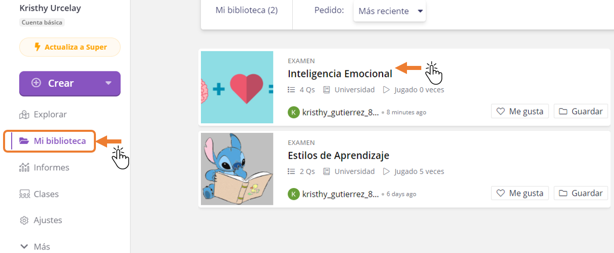 Dirígete a Mi biblioteca y selecciona el cuestionario que quieres implementar con tu grupo.