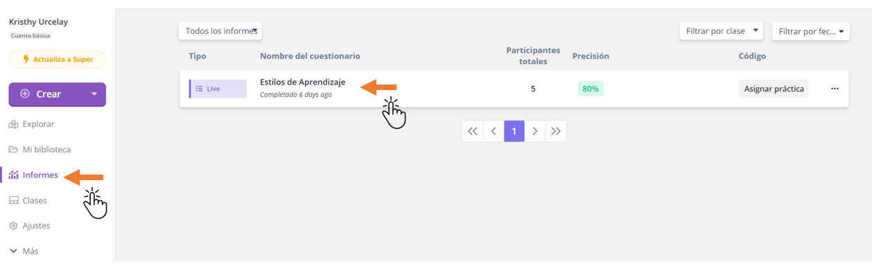 Da click en el botón de Informes y selecciona el de tu elección.
