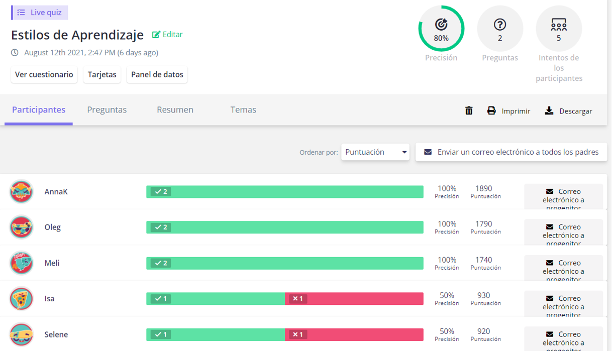 5. ¡Pon en acción el cuestionario con tus alumnos!
