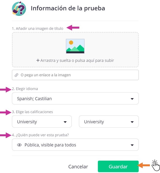 -Agregar una imagen a tu cuestionario para su portada.