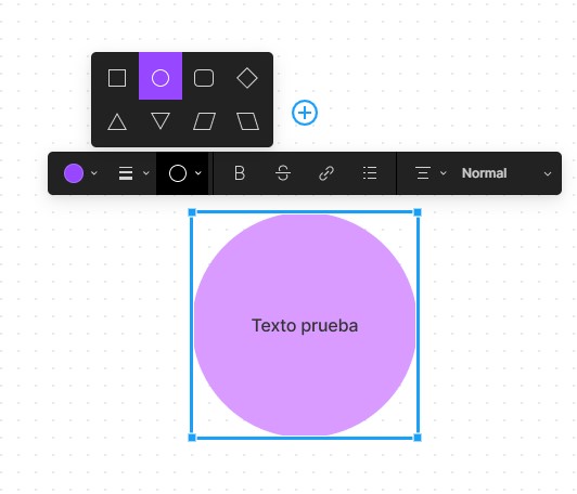 8.-Figjam cuenta con la herramienta de crear Figuras geométricas que pueden servir a nuestros esquemas. También podemos agregar texto a estas figuras escribiendo sobre ellas.