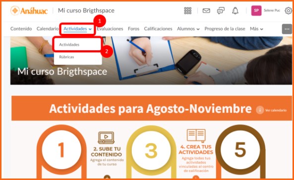 Paso 1. Vamos al menú de Actividades y seleccionamos actividades en la pestaña desplegable.