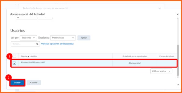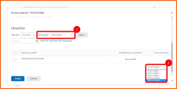 Paso 11. Ahora selecciona a todos los alumnos de la sección. Cuando los hayas seleccionado todos puedes hacer clic en guardar para terminar de editar.
