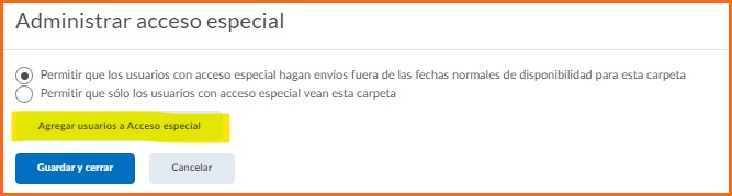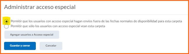 Paso 6. Se nos abrirá una nueva pestaña en la cual tendremos que seleccionar la primera opción que dice ”Permitir que los usuarios con acceso especial hagan envíos fuera de las fechas normales de disponibilidad para esta carpeta”.