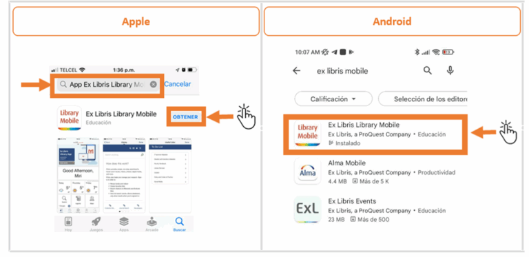 Paso 1. Descarga la App Ex Libris Library Mobile en la Play Store o App Store.