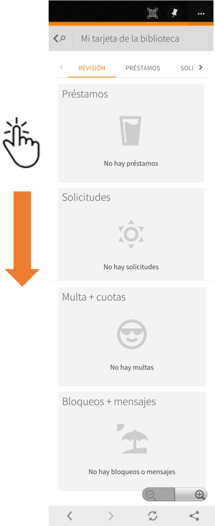 Otra función muy importante es la tarjeta de Biblioteca. Si das clic en la sección que dice  ‘’tarjeta de biblioteca’’, podrás tener a detalle el status de tus préstamos, solicitudes, multas y cuotas, así como posibles bloqueos y mensajes. ¡Estarás enterado de todo al alcance de un clic!