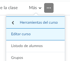 Paso 1: Para ir a la sección de agentes inteligentes da clic en ”Más” después en ”Herramientas del curso” y después a ”Editar curso”