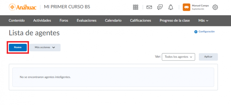 Paso 5. Regresaremos a la Lista de Agentes y daremos clic en Nuevo.