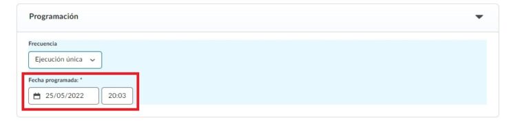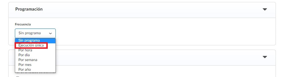 Paso 7. En la sección programación damos clic en Ejecución única.