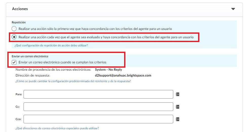 ¿Cómo enviar un correo personalizado a mis alumnos con un agente inteligente en Brightspace?