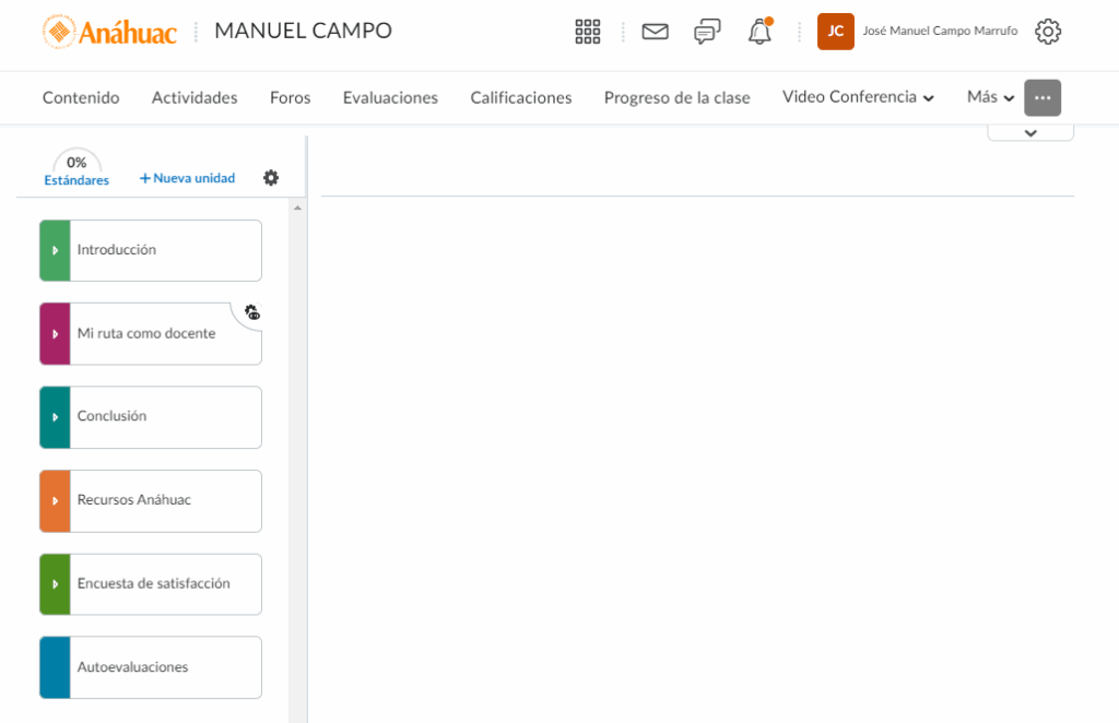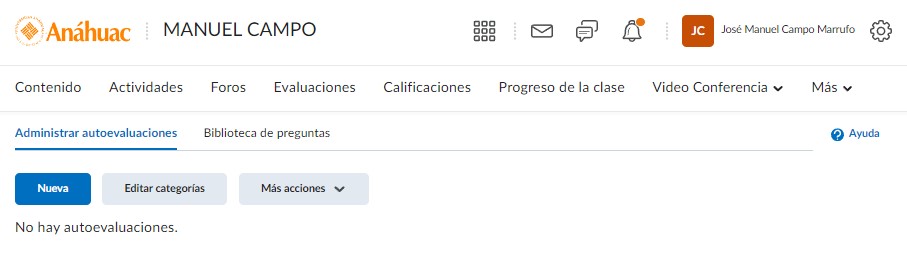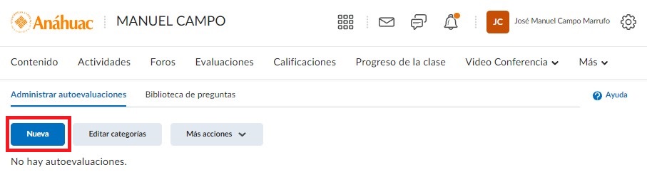 Si queremos crear una autoevaluación desde cero damos clic en Nueva.