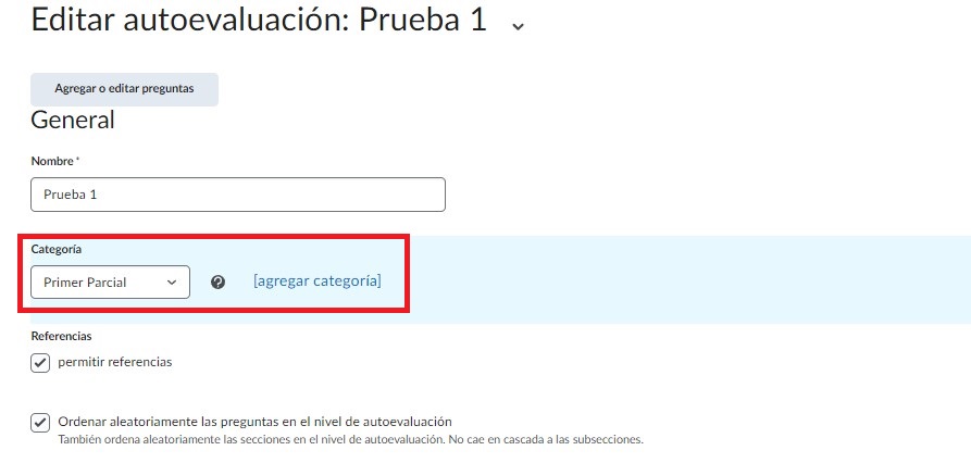 La primera casilla nos permite crear espacios en nuestras pruebas en donde podemos agregar las referencias de nuestras preguntas.