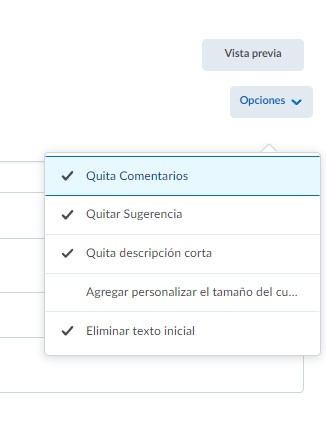 Ahora las siguientes casillas de verificación, definirán la forma en la que la prueba se presenta a los alumnos. Estas casillas son: