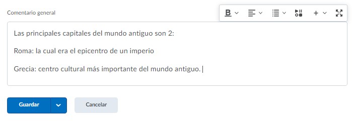En Comentario general es donde debemos agregar la respuesta que el alumno deberá comparar con la suya para poder validar su conocimiento