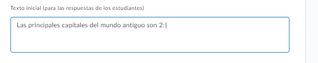 En el texto inicial para las respuestas de los estudiantes agregamos un inicio al texto que queremos que agregue.