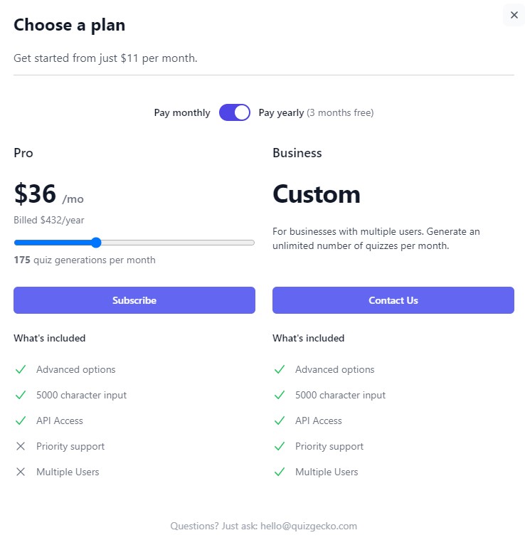 • Con una cuenta Pro, puedes generar quizzes mayores de 3 preguntas.