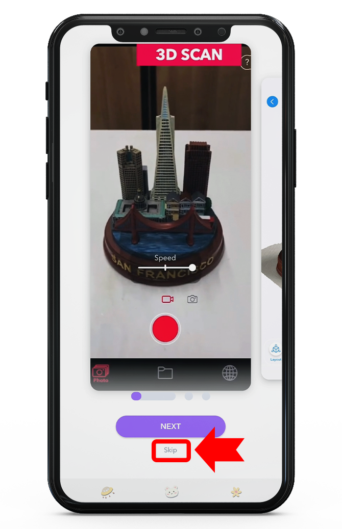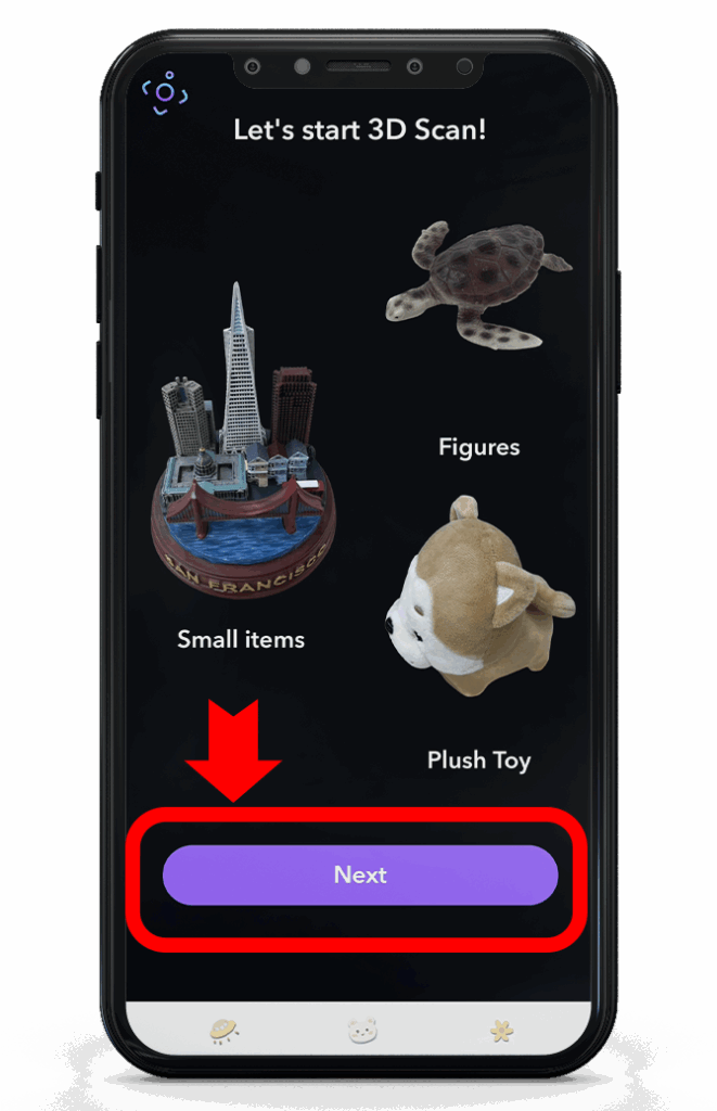 Paso 4. Apuntamos al objeto que queremos capturar en 3D y seleccionamos la opción de Next.