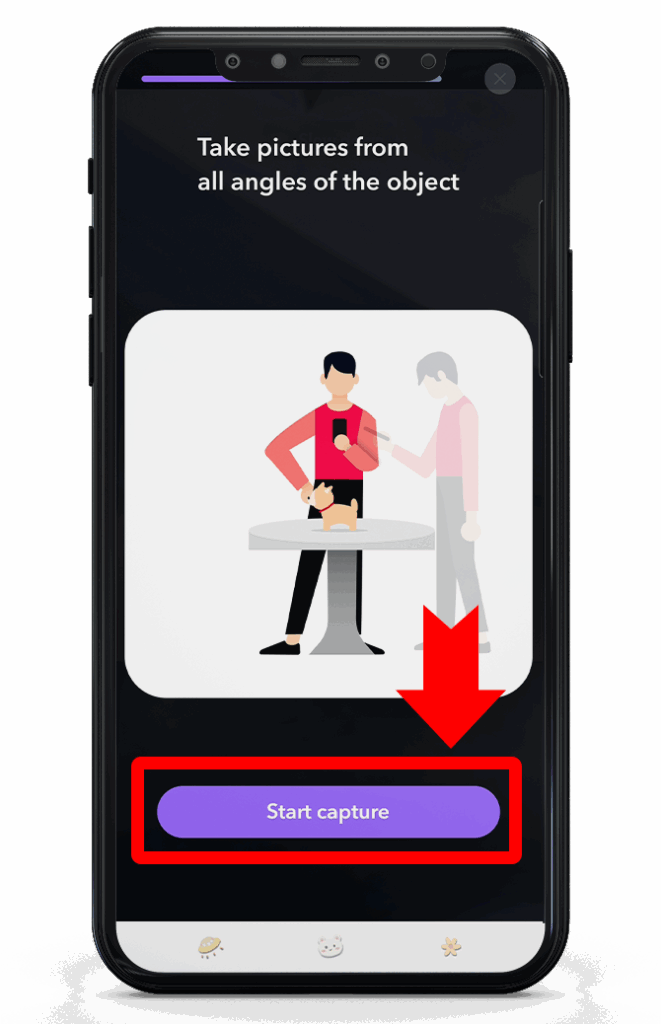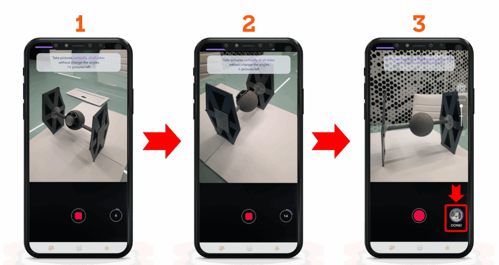 Paso 6. Nuestra cámara cambiará y tendremos que darle vuelta al objeto mientras grabamos para que se vayan almacenando las imágenes en la aplicación. Es de suma importancia dar vueltas al rededor del objeto para captar todos los detalles.